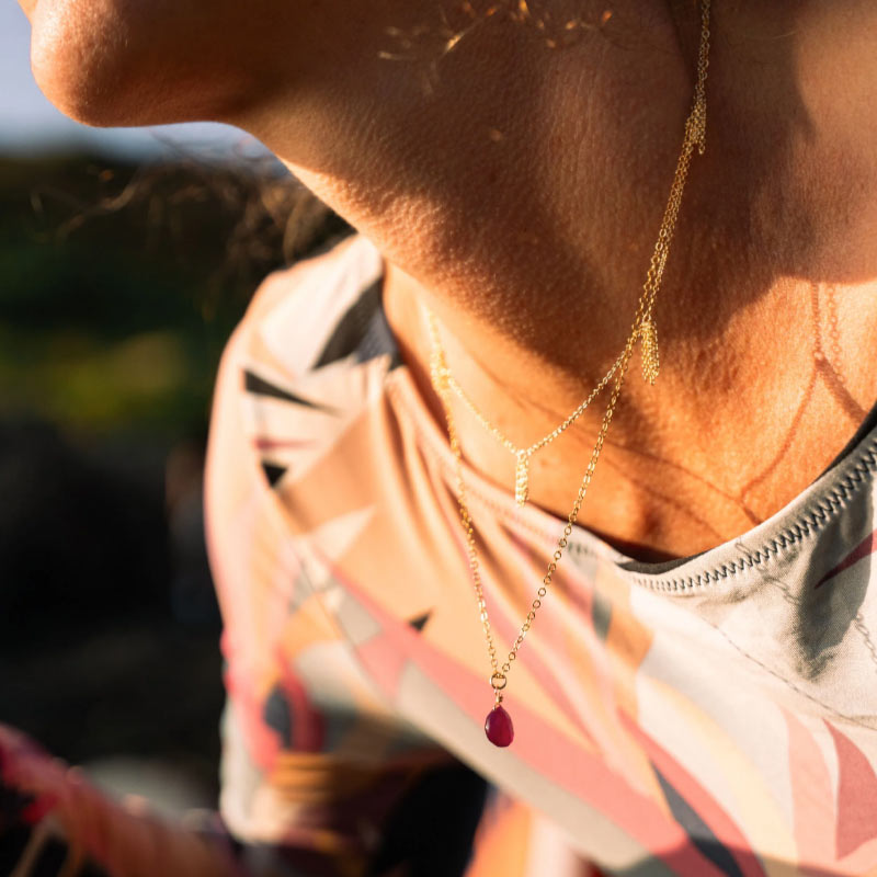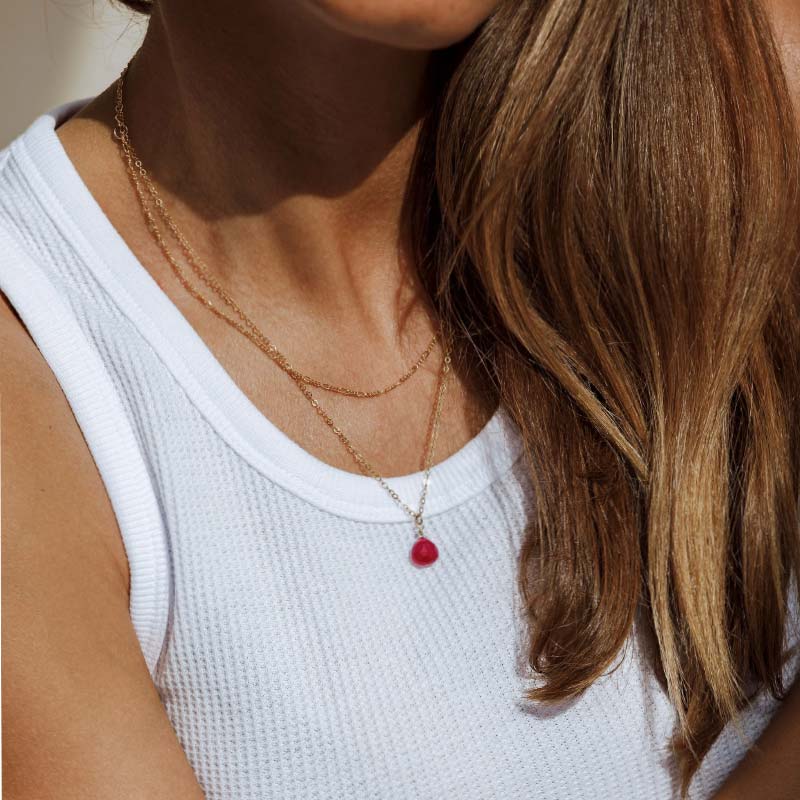 A breezy, modern statement on its own, or team with other necklaces and pendants for a flash of colour in a layered look.