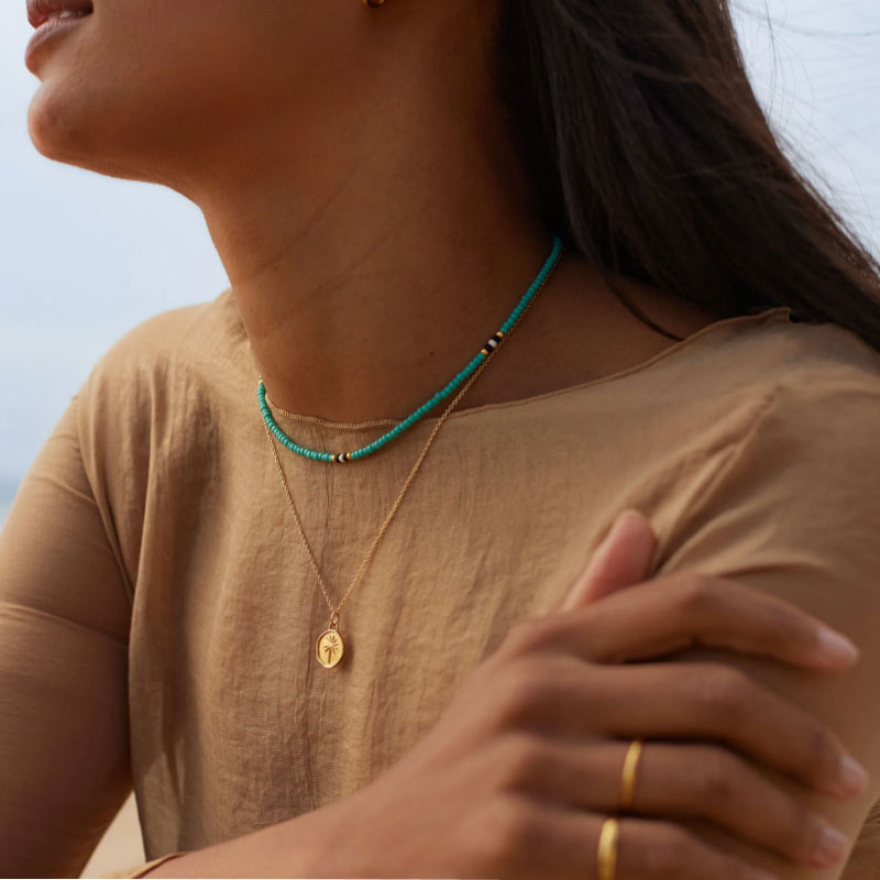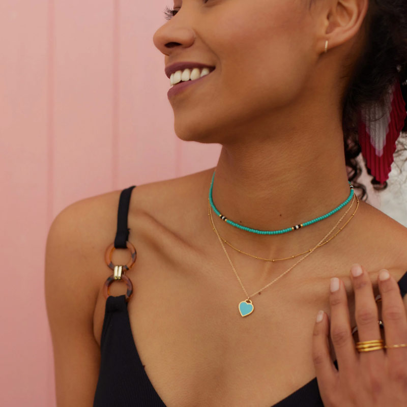 The Poolside necklace offers an adjustable length, making it an easy addition to existing necklace stacks.