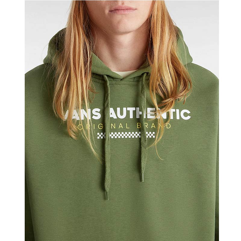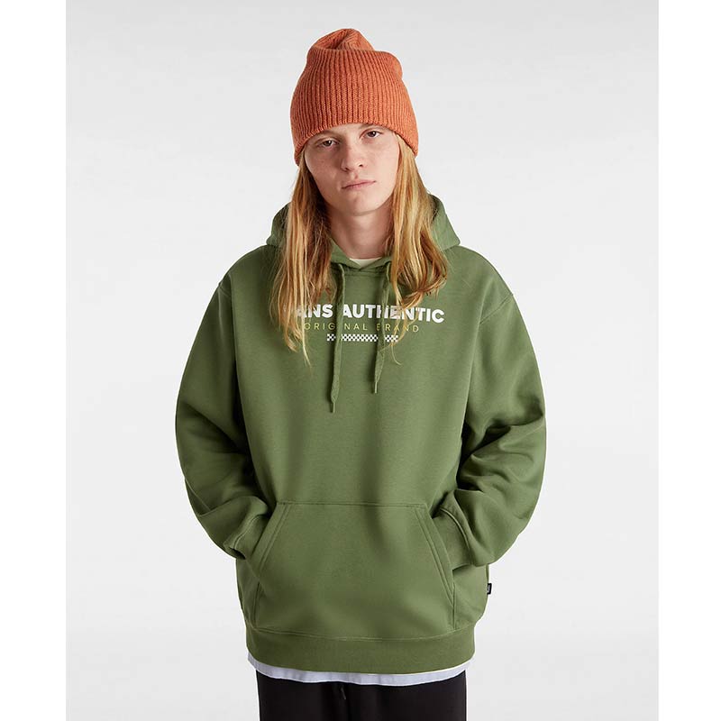 The Vans Sport Loose Fit Pullover Hoodie has long sleeves, a front pouch pocket and the Vans logo on the front. It has a loose fit.