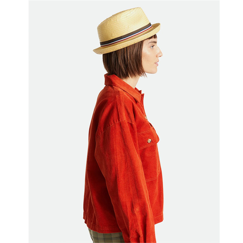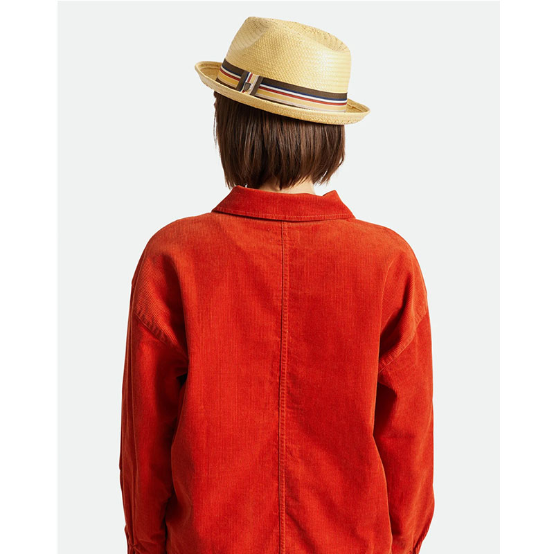 The Castor is a medium-structure paper straw fedora with a sharp pinch and crease. Embellished with a grosgrain outside band and metal crest pin. It has 50+ UPF and an adjustable interior sweatband making it a flawless companion for sunny days.