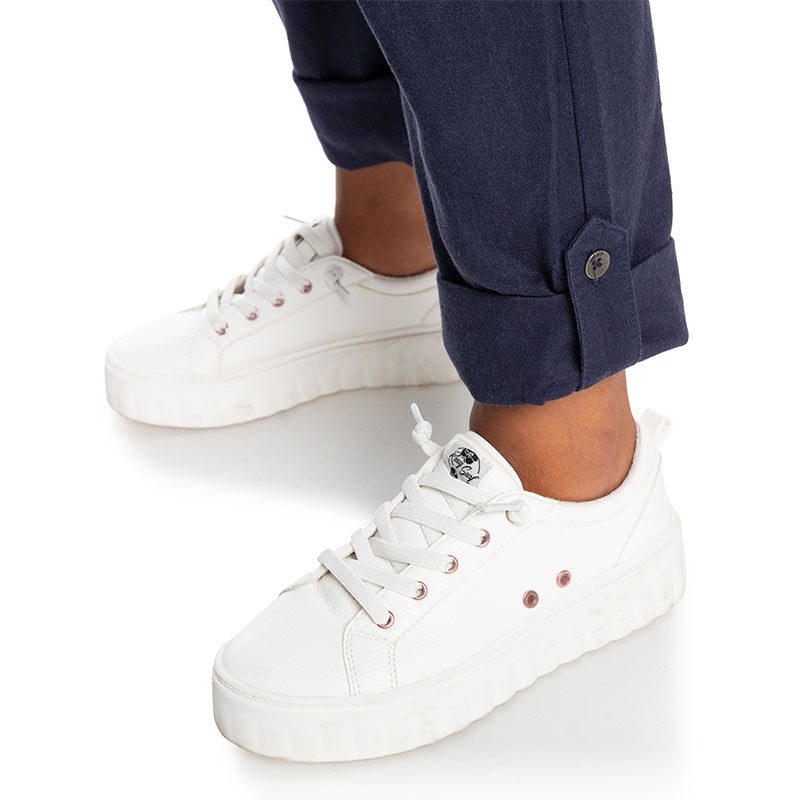 Roll up at bottom legs with tab and metal Roxy button