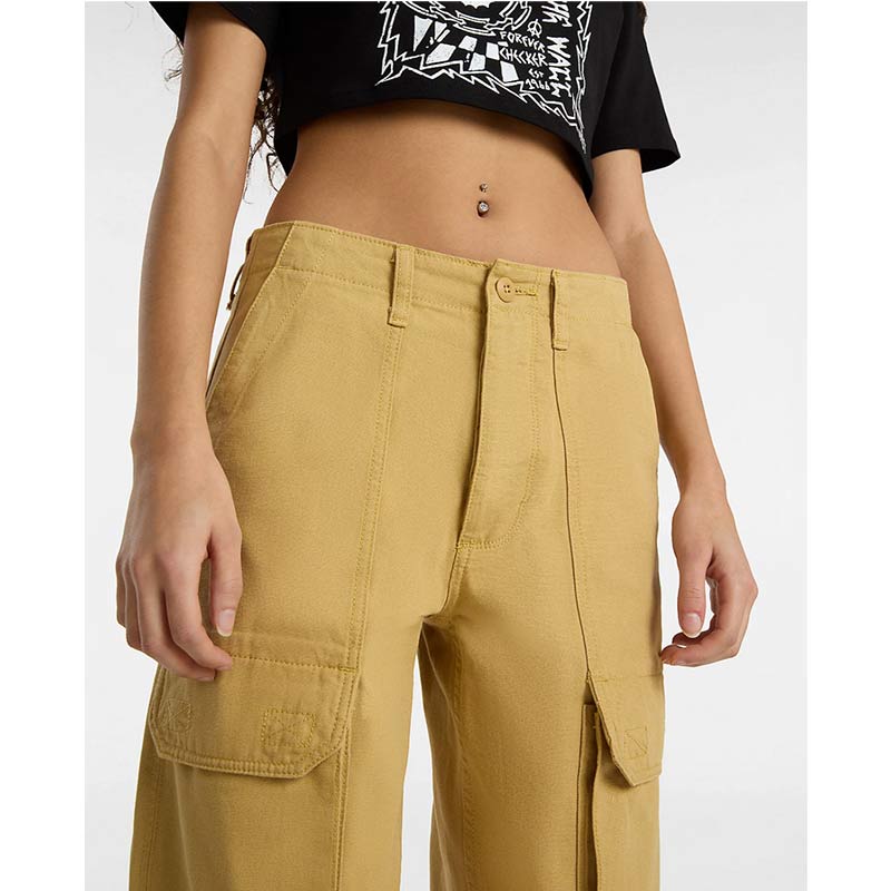 • Relaxed fit canvas wide leg cargo pant