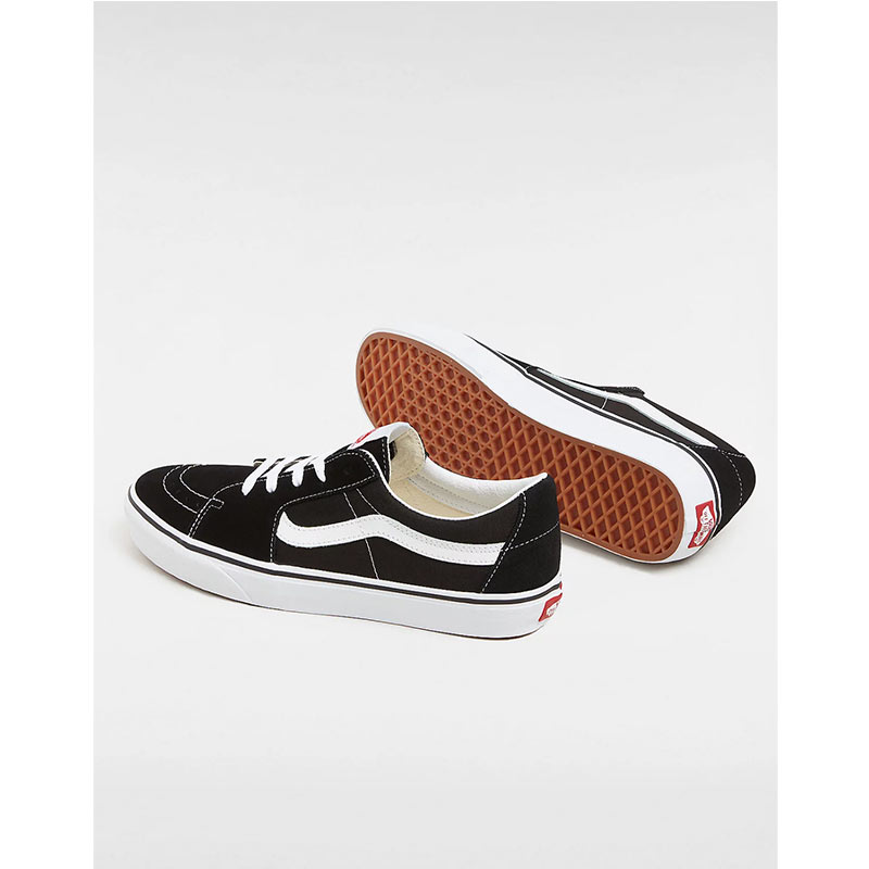 The Sk8-Low, a takedown of the legendary Vans high top skate shoe, is built with an array of colors and materials to provide a familiar Sk8-Hi aesthetic in a low top shoe. Featuring sturdy canvas and suede uppers, the Sk8-Low also includes re-enforced toe caps to withstand repeated wear, padded collars for support and flexibility, and signature rubber waffle outsoles.